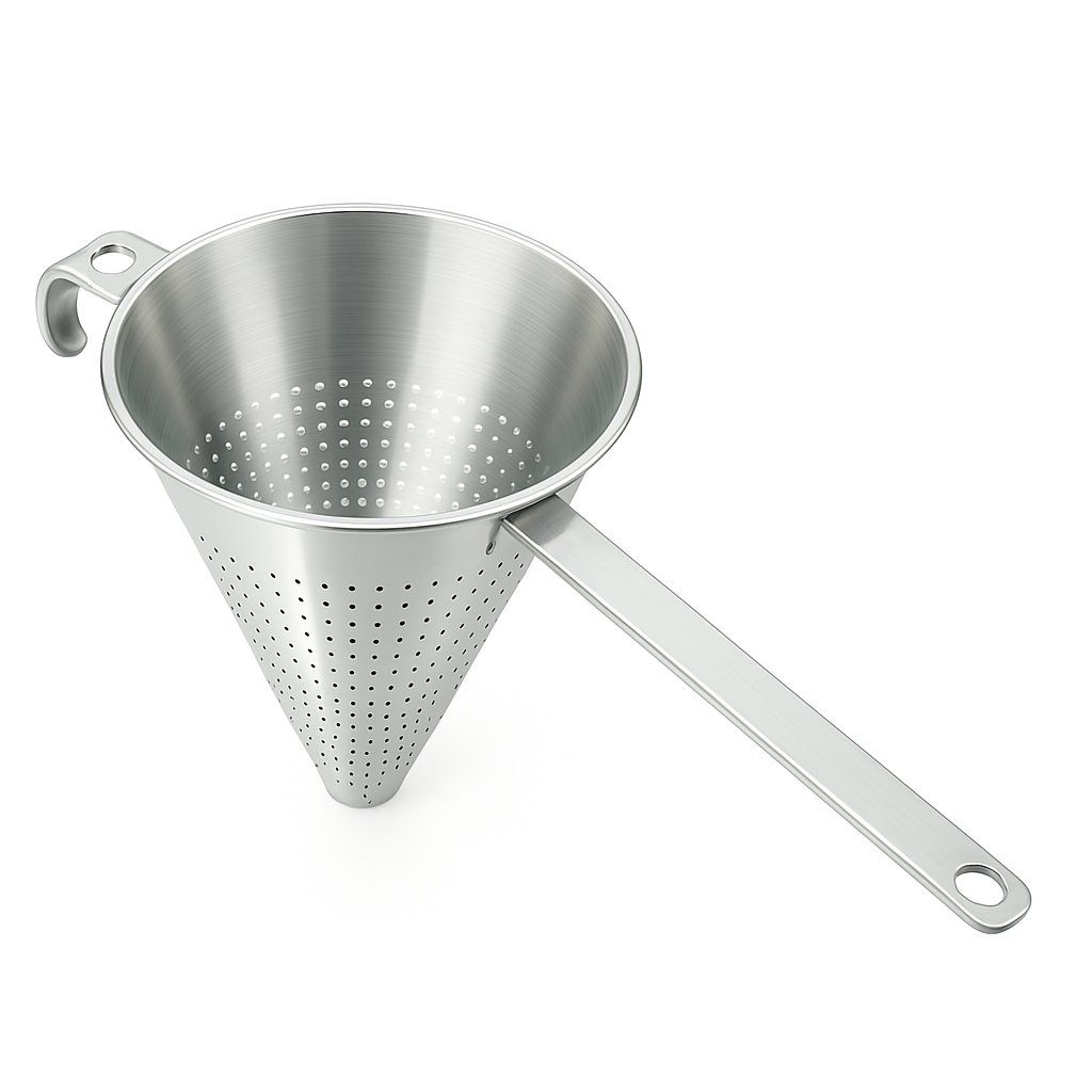 Menší kónický cedník s priemerom 16 cm a výškou 14 cm je skvelou voľbou pre presné a rýchle cedenie menšieho množstva surovín. Vyrobený z kvalitnej nerezovej ocele, je odolný voči korózii, mechanickému poškodeniu a vďaka svojmu tvaru umožňuje presné smerovanie tekutiny priamo tam, kde potrebujete. Rukoväť zaisťuje stabilné a bezpečné uchopenie počas práce.