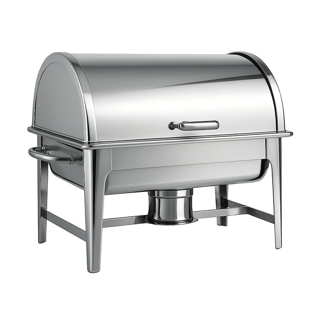 Chafing roll top GN 1/1 je nevyhnutným doplnkom pre profesionálne cateringové služby, hotelové bufety či reštaurácie. Vďaka výklopnému veku a kvalitnému spracovaniu z nerezovej ocele zabezpečuje efektívne a hygienické servírovanie teplých jedál počas celej akcie.