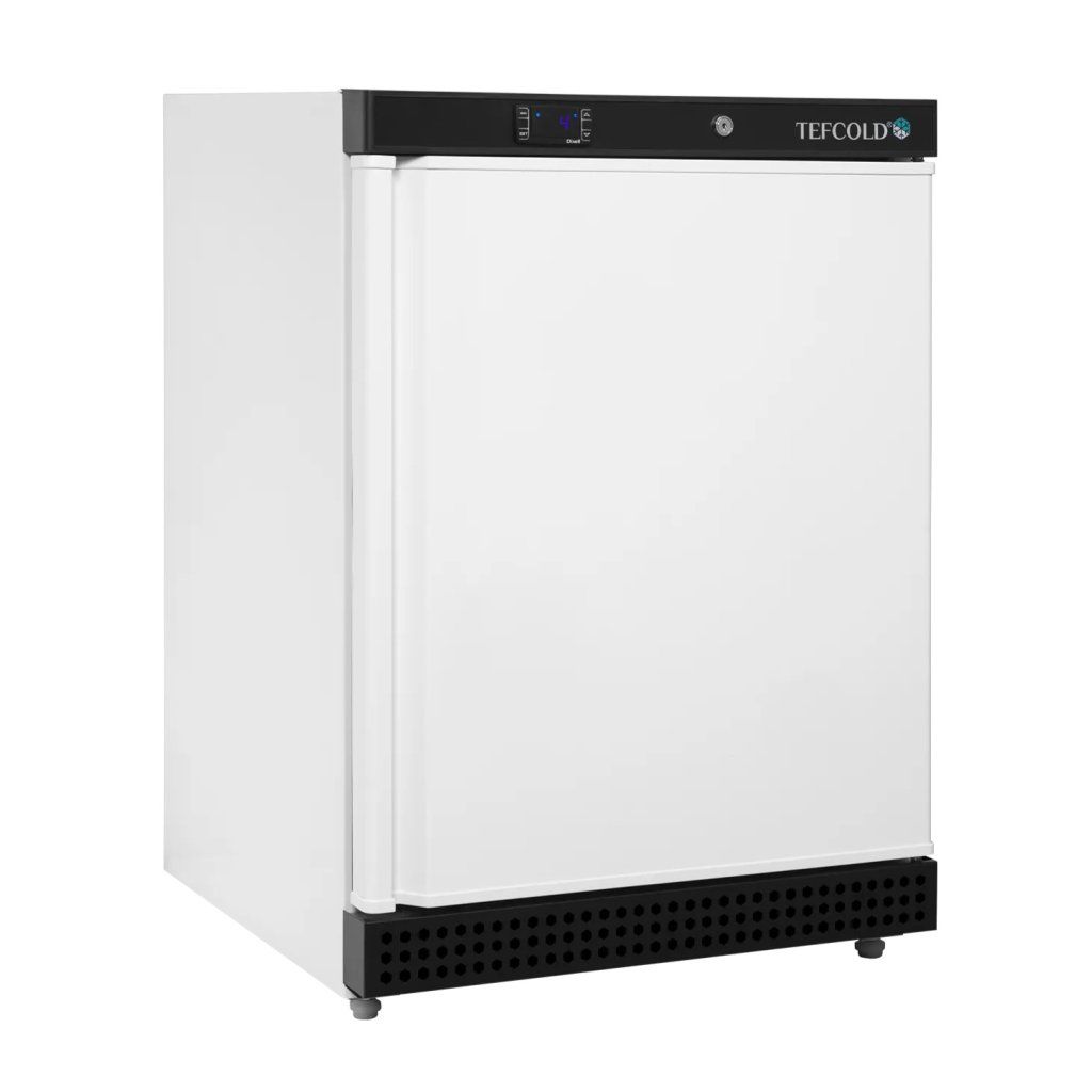 Kompaktná biela chladiaca skriňa s brutto objemom 129 l je ideálnym riešením pre menšie prevádzky či priestory pod pultom. Jednokrídlové plné dvere zabezpečujú výbornú izoláciu a prispievajú k nižšej spotrebe energie. Vnútro je vybavené tromi roštovými policami pre praktické uloženie tovaru. Automatické odmrazovanie uľahčuje údržbu a integrovaný zámok chráni obsah pred neželaným prístupom.