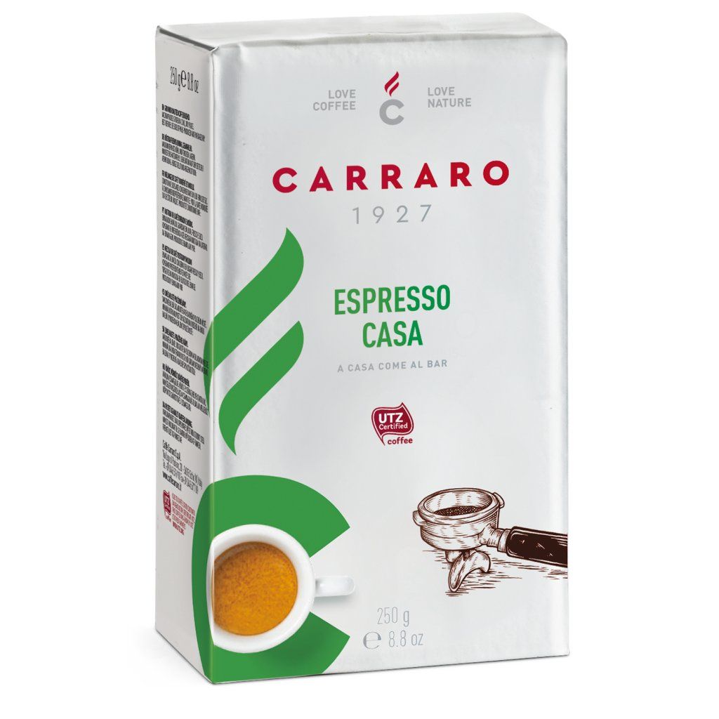 Zrnková (mletá) káva Carraro Espresso Casa 250 g je remeselne vytvorená talianska zmes šitá na mieru domácim espressom: