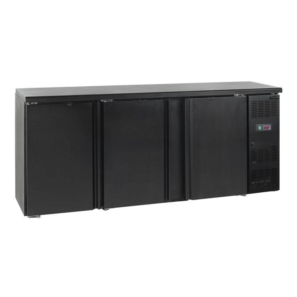 Čierny minibar s brutto objemom 460 l ponúka ideálnu kombináciu priestoru, elegancie a výkonu. Tri plné samozatváracie dvere minimalizujú únik chladu a šetria energiu, zatiaľ čo vnútro z nehrdzavejúcej ocele zaručuje odolnosť aj v náročnej prevádzke. Šesť nastaviteľných políc z kvalitnej ocele SS304 umožňuje praktické usporiadanie fliaš, pohárov či ingrediencií. Elegantné čierne prevedenie zapadne do každého moderného baru bez toho, aby pôsobilo rušivo.