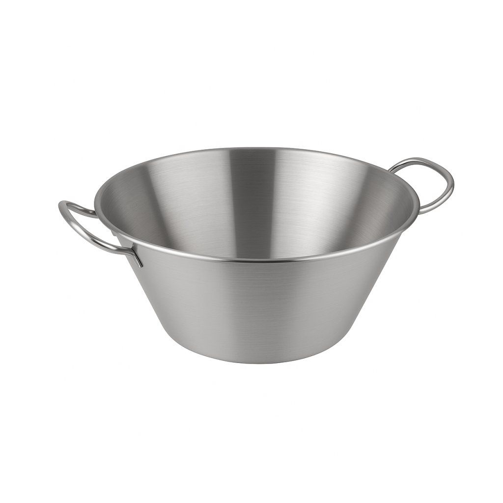 Kónická miska s objemom 17 litrov je navrhnutá pre profesionálne použitie v kuchyniach, kde je potrebné miešať alebo pripravovať veľké množstvá surovín. Je vybavená pevnými bočnými úchytmi, ktoré umožňujú bezpečné prenášanie aj pri plnom objeme. Vďaka tvaru so zúženým dnom je ideálna na šľahanie, miešanie cesta, marinovanie mäsa alebo spracovanie šalátov, pričom jej konštrukcia zaručuje stabilitu a odolnosť aj pri intenzívnom používaní.