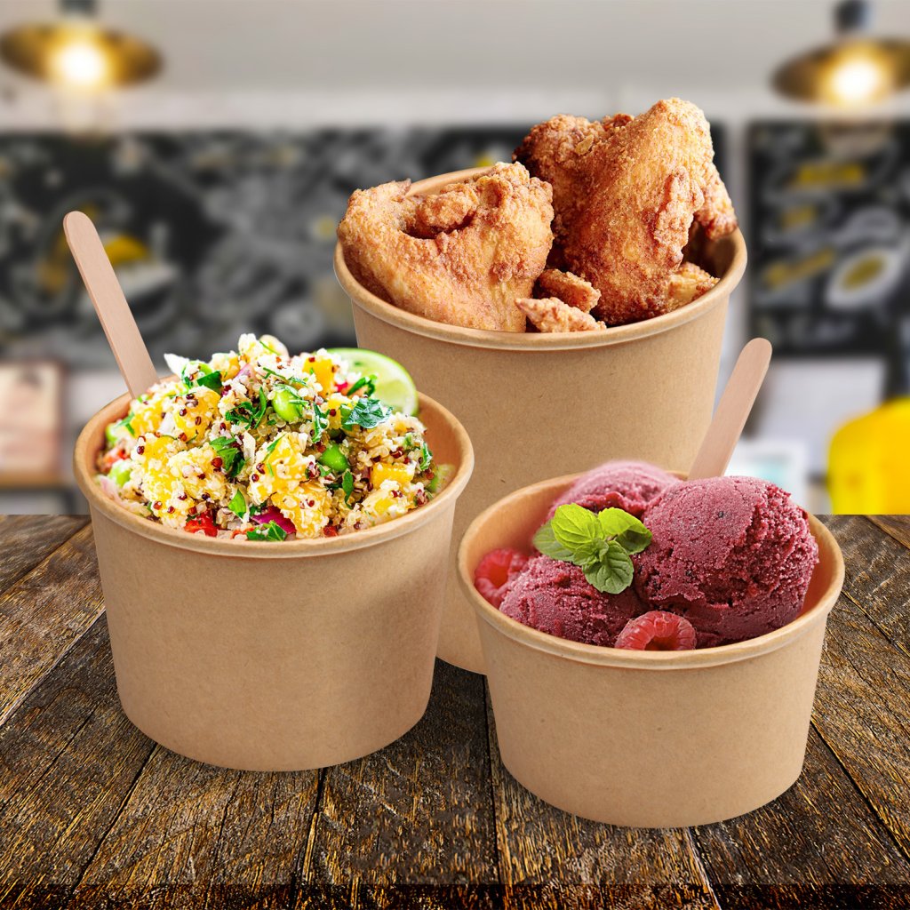 Jednorazová papierová miska KRAFT s objemom 350 ml v balení 50 ks je skvelou voľbou pre gastronómiu, catering a street food prevádzky. Vďaka svojmu prírodnému kraftovému dizajnu pôsobí elegantne a zároveň je šetrná k životnému prostrediu.