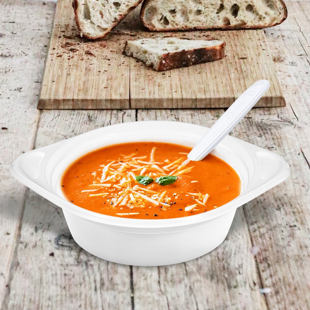 Hľadáte praktické a odolné misky na servírovanie teplých pokrmov? Biela miska s uškami (500 ml) z kvalitného polypropylénu (PP) je ideálna na polievky, omáčky či kaše. Vďaka praktickým úchytom umožňuje pohodlné držanie aj pri horúcich jedlách.
