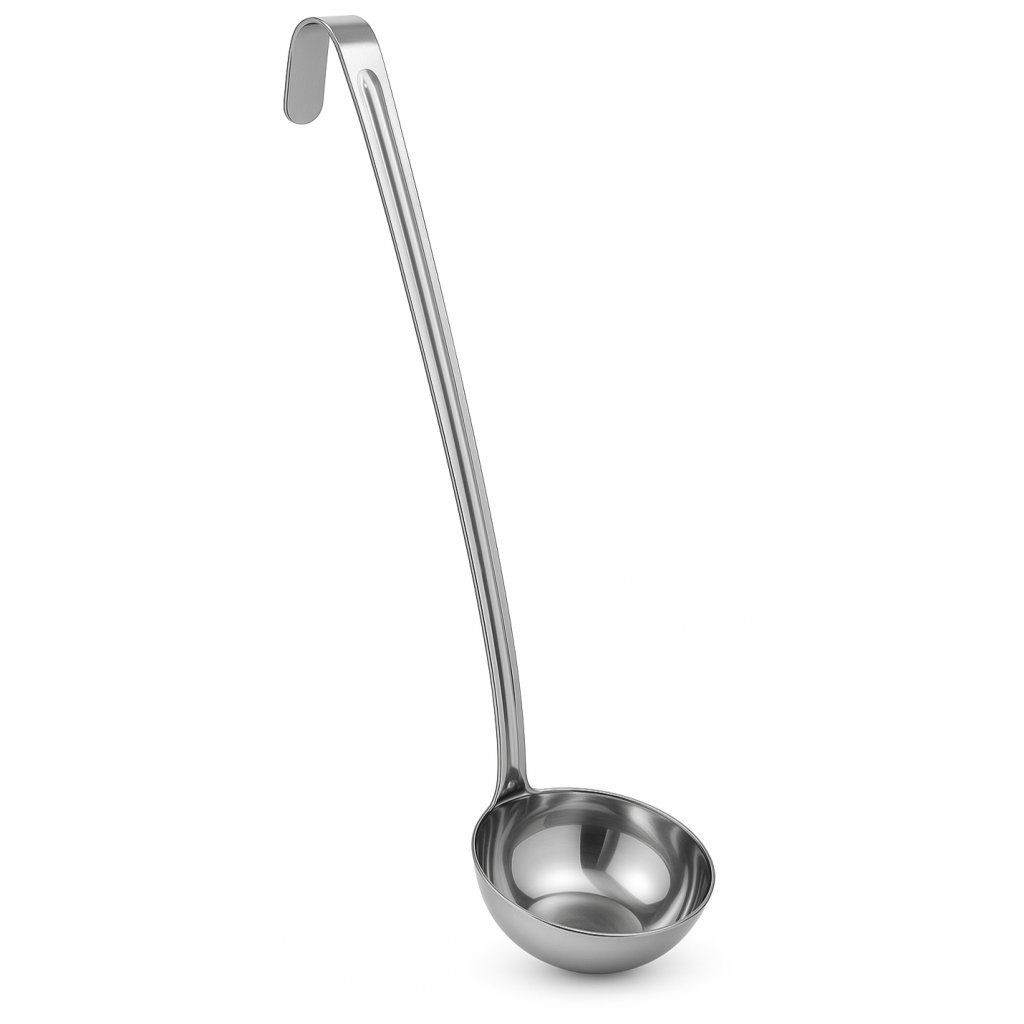 Profesionálna naberačka Kitchen Line s objemom 89 ml je ideálnym pomocníkom pre každodenné použitie v gastronómii aj domácnosti. Vďaka kvalitnému spracovaniu z nerezovej ocele spĺňa aj tie najvyššie nároky na hygienu a odolnosť. Má praktickú veľkosť a ergonomickú rukoväť, ktorá padne perfektne do ruky.
