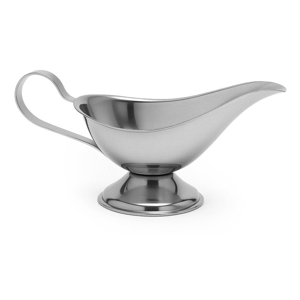 Nerezový omáčnik s objemom 230 ml spája funkčný objem s elegantným vzhľadom, ktorý pozdvihne prezentáciu každého pokrmu. Vďaka jemne tvarovanej výlevke a lesklému povrchu pôsobí luxusne a profesionálne, či už ho použijete v reštaurácii, hoteli alebo pri domácom stolovaní.
