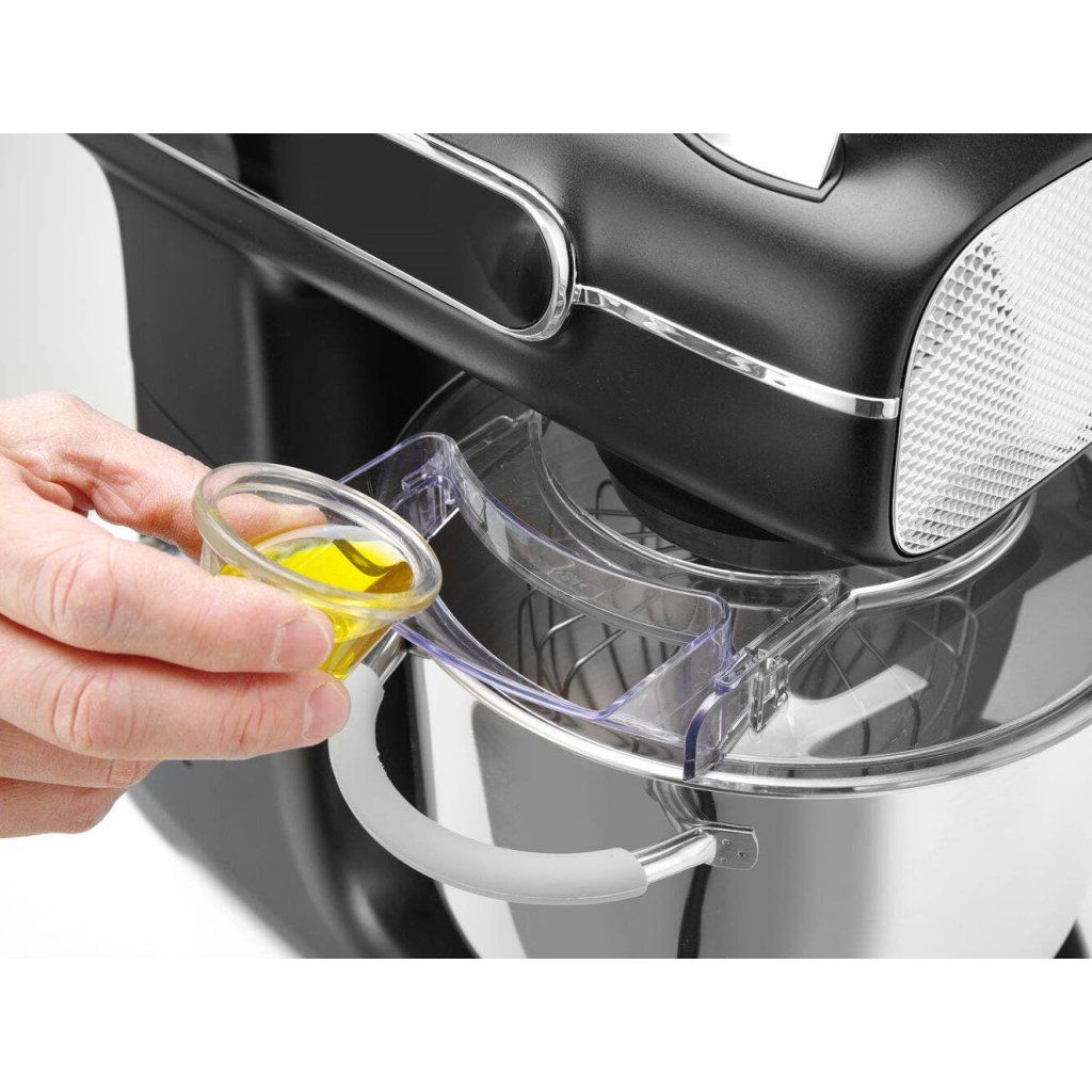 - Kompletné balenie – mixér, metlička, hák na cesto a priehľadný kryt misy