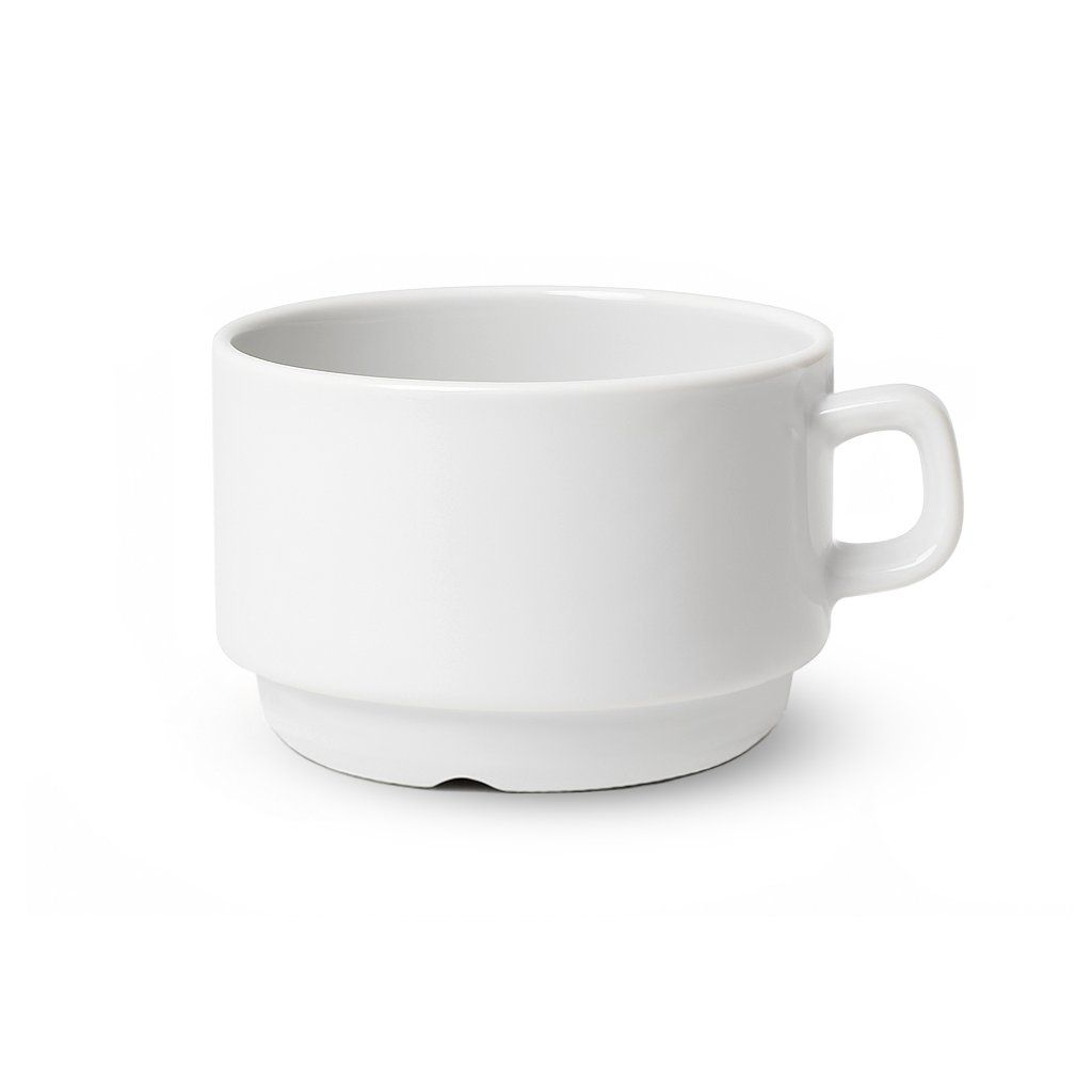 Elegantná minimalistická biela porcelánová šálka s objemom 200 ml je ideálnou voľbou pre kaviarne, reštaurácie aj domácnosti. Jej zúžené dno umožňuje bezpečné stohovanie, vďaka čomu efektívne šetrí miesto v poličkách aj výdajných zónach.