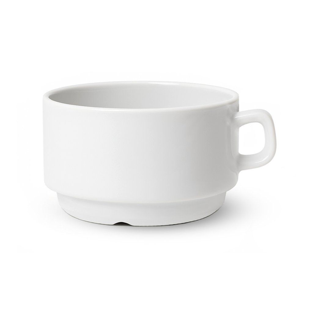 Porcelánová šálka s objemom 250 ml ponúka viac priestoru pre kávové špeciality či čaje, a zároveň zachováva jednoduchý, elegantný vzhľad. Vďaka stohovateľnému prevedeniu so zúženým dnom šálka šetrí cenný priestor – ideálne riešenie pre gastro prevádzky aj domácnosti.