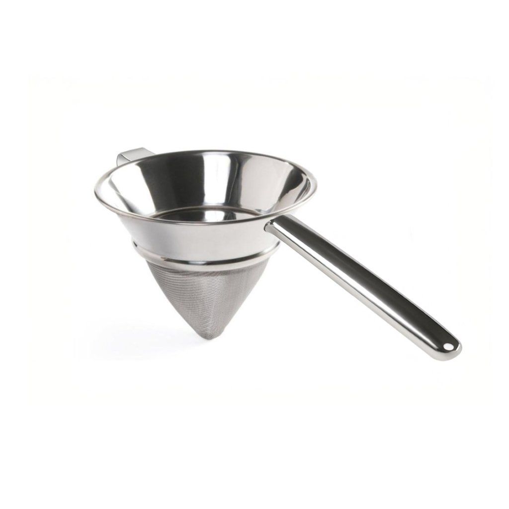Profesionálne kónické sitko Ø20,5 cm v tradičnom ázijskom tvare ponúka výnimočne jemné sito vhodné na dôkladné cedenie vývarov, omáčok či infúzií. Vďaka zosilnenej nerezovej obrube, pevnej rukoväti a praktickému háčiku na uchytenie o nádobu je práca so sitkom pohodlná a bezpečná. Je ideálnou pomôckou pre gastronómiu aj domácich nadšencov varenia.